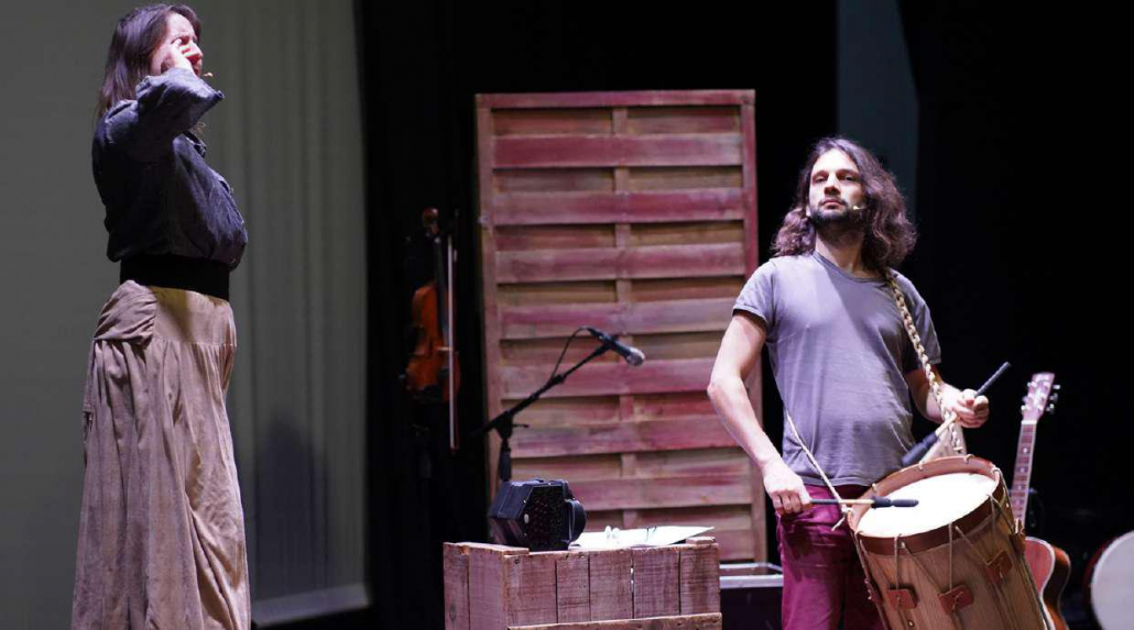 Dans un décor fait de planches et de caisses en bois, assemblées au gré du récit pour évoquer une forêt, une grotte ou le pont d’un bateau, une comédienne et un conteur musicien nous font revivre quelques-unes de ces histoires de fées, korrigans et autres revenants. Une véritable invitation au voyage aux sons des bodhran, harpe, violon et autres tin whistles… L’awen, en breton et en gallois, signifie l’inspiration poétique et musicale, le souffle divin qui parcourt le poète ou le musicien car pour les Celtes, l’homme n’est pas au centre du monde, il est un maillon de la grande chaîne cyclique de la vie
